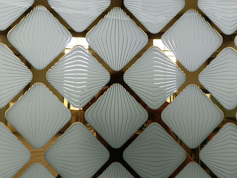 Le verre artistique est conçu en combinant les procédés de fabrication de dépolissage à l’acide, impression numérique, impression par écran (sérigraphie) et revêtement en titane. L’ajout de motifs artistiques uniques et élégants créer un matériau décoratif unique en son genre, parfait pour les décorations d’intérieur.